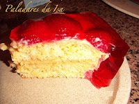 Quando a gelatina estiver mais fria, deitar um pouco na forma onde temos o bolo e vai ao frio deixar arrefecer um pouco e juntar mais gelatina.
